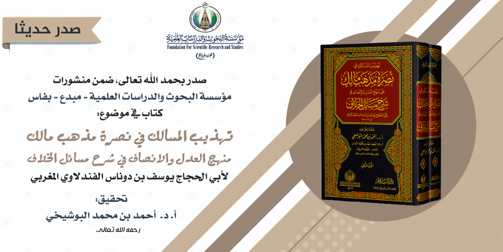 صدر بحمد الله تعالى، ضمن منشورات مؤسسة البحوث والدراسات العلمية – مبدع، فاس. كتاب في موضوع: تهذيب المسالك في نصرة مذهب مالك على منهج العدل والانصاف في شرح مسائل الخلاف تأليف: أبو الحجاج يوسف بن دوناس الفندلاوي المغربي المالكي تحقيق : العلامة أ.د. أحمد البوشيخي ــ رحمه الله تعالى أكمل القراءة »